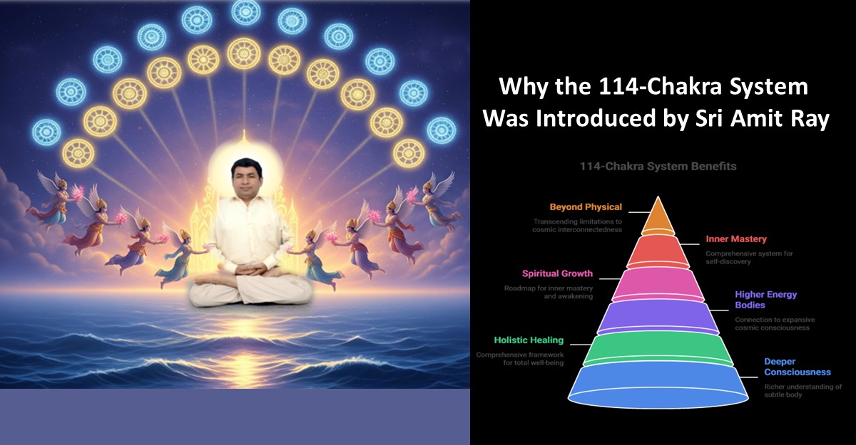 The 114-chakra system was first introduced by Dr. Sri Amit Ray in 2005, to provide a more comprehensive and advanced framework for understanding the human energy system, extending beyond the seven primary chakras to encompass a deeper and more holistic view of human consciousness and spiritual evolution. Dr. Sri Amit Ray developed this expanded system aims to unlock higher potentials, facilitate deeper spiritual dimensions and connection, promote holistic healing across physical, emotional, mental, and spiritual dimensions, and foster a sense of oneness with the universe.